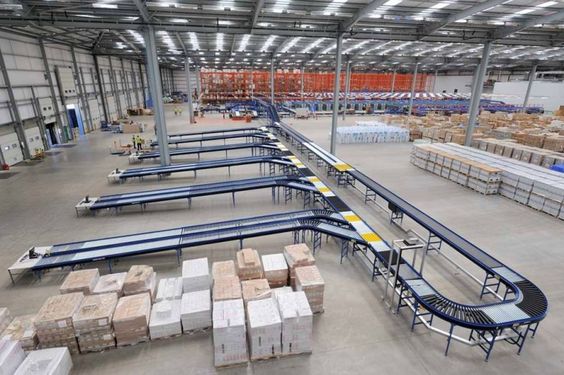 Boxes making their way down the conveyor belt on their way to customers.